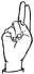 На ћирилици написано РАДНА ПЕРОШЕВИЋ састоји се из 14 слова [?]. Исписано ћириличном једноручном азбуком за глувонеме:
